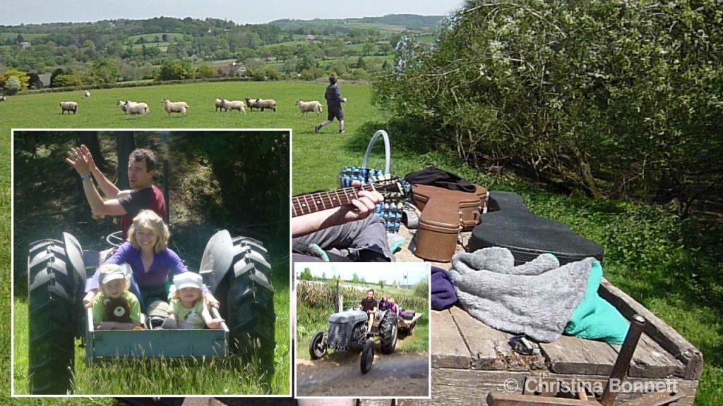 Picnic in the trailer and transport box – photo Collage of photos